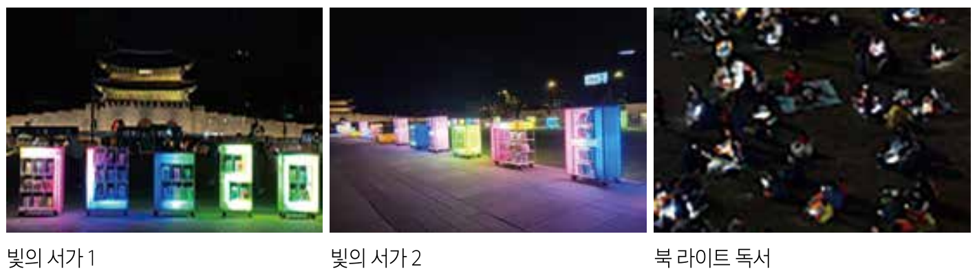- 야간 시간 대 서울광장 내 야외도서관을 조성하여 책문화를 향유할 수 있는 공간과 독서 비품, 프로그램 든 제공